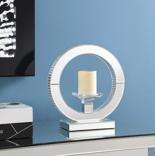 8mm Mirror Overlaying MDF and Particle Board, Rain Drop Glass Accents, 8mm Tempered Glass Accents on Sides, Beveled Edges A4005 - Candle Holder - P...