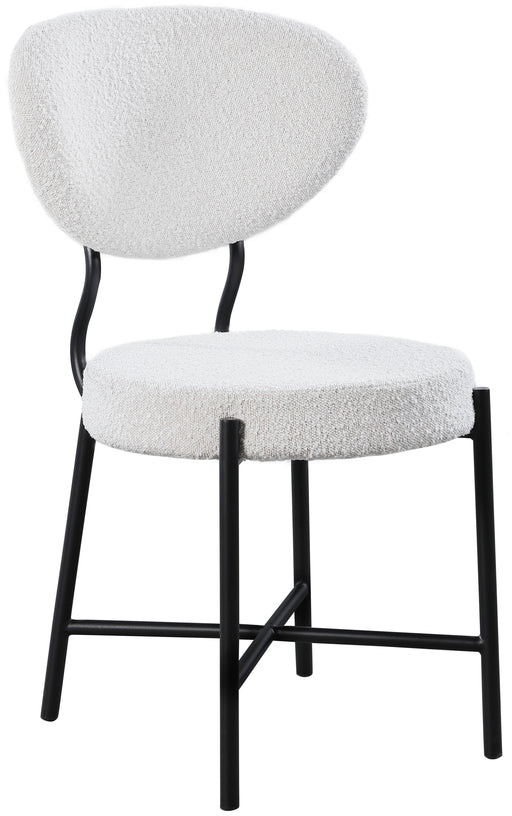 Eat your meals in style with this Allure dining chair. Featuring a matte metal frame and boucle fabric upholstery, this chair is as sturdy as it is...