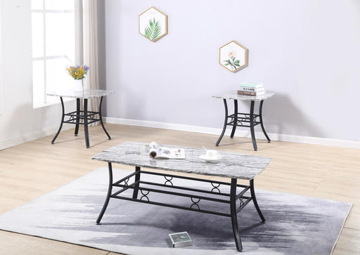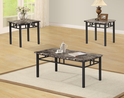 Gray Faux Marble Tops, Polyurethane Finish, Grid Style Apron, Gray Finish Leg T761 - Table Set (Set of 3) - Gray83.0 lb