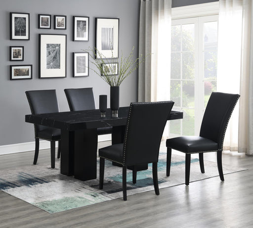 Faux Marble Dining Table, 100% Hardwood Table Base, Swirl Accent Pattern D133 - 5 Piece Dining Room Set (Dining Table And 4 Chairs) - Black326.8 lb...