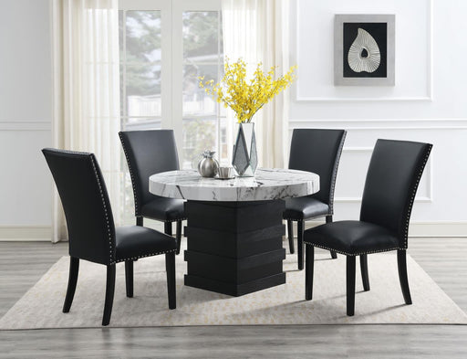Coordinates with Multiple Standard Height Chairs, Standard Height White Faux Marble Top, Ebony Black 100% Hardwood Table Base, Horizontal Table Bas...
