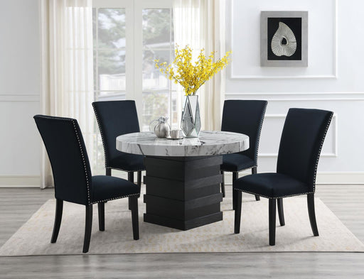 Coordinates with Multiple Standard Height Chairs, Standard Height Faux Marble Top, Ebony 100% Hardwood Table Base, Horizontal Table Base Design, Bl...