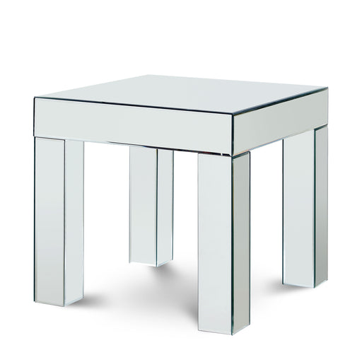 Let this Lainy mirrored end table become a focal point in your living room or den. This handsome table features a boxy design with rectangular line...
