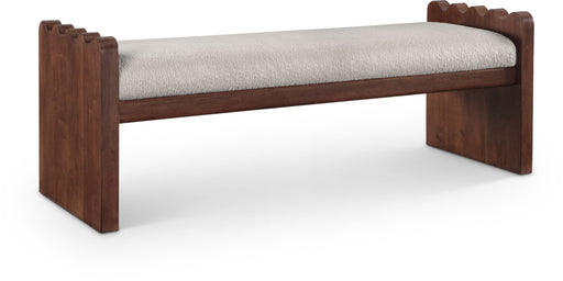 Transform your interior with the Sonia velour fur fabric upholstered bench finished in a rich brown walnut finish, a harmonious blend of luxury and...