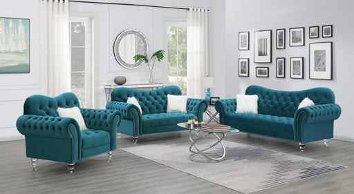 Tufted Seat, Back, and Arms, Turquoise Luxurious Velvet, Rolled Arms, & One Solid Cushion Seating, Wavy Back Design, & Chrome Nail Head Tri...