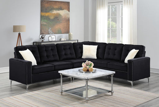 Black Velvet, High Density Foam Cushions, Multicolor Pillow Backs, Squared Arms, Plastic Feet, Faux Fur Accent Pillows U355 - 2 Piece Sectional - B...