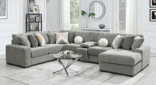 U282 - 6 Piece Setional With Right Chaise (1 LAF + 1 Wedge + 2 Armless Chair + 1 Console + 1 RAF Chaise) - GrayProduct Features Gray Teddy Bear Fab...