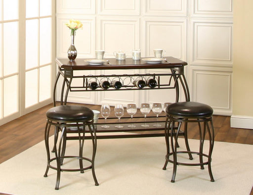 Brown Wood Top Finish, Wine Rack, Tubular Steel Frame, Electrostatic Powder Coated Baked On Finish, Chocolate PU Fabric Chair Cushions, Powder Coat...
