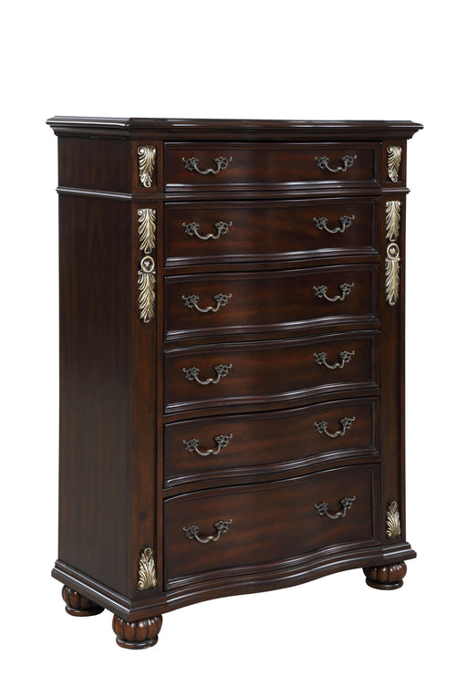 The Royal Classics Maximus 6-Drawer Chest in Madeira Brown is a masterfully crafted piece that blends enduring quality with timeless elegance. Cons...