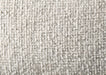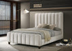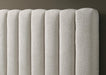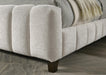 Ivory Chenille Fabric, Fully Upholstered, Low Profile Footboard, Black Plastic Bedframe Legs, Vertical Designed Accents