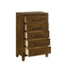 The Ballard 5-Drawer Chest in Walnut is a perfect blend of classic elegance and robust durability. Constructed with solid Rubberwood, premium engineered woods, and genuine Okume veneers, this chest is designed to stand the test of time while showcasing the rich, multi-step walnut finish that enhances the natural grain and unique character of the wood. The transitional design features thick picture frame moldings that beautifully frame the drawers, complemented by sleek, elongated square pulls and tapered legs that add a touch of sophistication. Each drawer is meticulously crafted with four-corner English dovetail joinery, providing durability and smooth operation on center-mounted slides. The drawers also feature finished interiors, offering snag-free storage that combines functionality with refined quality. This chest not only adds style to your bedroom but also delivers practical, long-lasting storage solutions for your essentials.