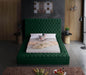 Extend elegance to the bedroom with this Bliss velvet bed. This bed has a rich look, with deeply tufted upholstery along its upper platform perimeter and headboard, ensuring that it is a good fit in modern bedroom themes. Storage rails and footboard are included to ensure maximum versatility, and the bed comes with slats, so you can use it without a box spring. The velvet fabric used in its design makes it easy to integrate alongside other furnishings.