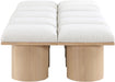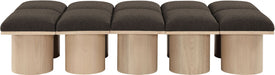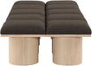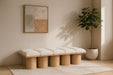 Bring valuable seating and remarkable style to your space with this Pavilion boucle fabric bench, an exquisite balance of style and usability for the entryway, bedroom, and beyond. Crafted from oak veneer with a natural finish, this bench has a 4-inch-thick seat cushion that's channel-tufted for a touch of luxury. The bench's columnar bases add a dash of art deco design, making it a captivating focal point in any room.