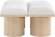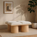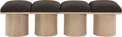 Bring valuable seating and remarkable style to your space with this Pavilion boucle fabric bench, an exquisite balance of style and usability for the entryway, bedroom, and beyond. Crafted from oak veneer with a natural finish, this bench has a 4-inch-thick seat cushion that's channel-tufted for a touch of luxury. The bench's columnar bases add a dash of art deco design, making it a captivating focal point in any room.