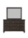 The Sevilla Dresser Mirror in brown is a perfect blend of timeless craftsmanship and versatile design, making it an elegant addition to any bedroom. Skillfully crafted from solid Acacia wood and Acacia veneers, this mirror features a rich walnut finish that has been meticulously hand-distressed, giving it a warm, vintage appeal. The mirror's frame, designed with extra-wide picture frame moldings, beautifully encases crystal-clear, low-distortion beveled glass, providing a flawless reflection and impeccable functionality. Its robust construction and substantial presence command attention, while the rich wood tones enhance a cozy, inviting ambiance. Ideal for classic, rustic, or historically inspired spaces, this mirror is designed to complement the matching dresser, serving as a captivating focal point in any room.