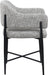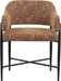 Blending effortless comfort with modern design, the Dame polyester fabric upholstered dining chair offers a relaxed, trendy look. A matte black iron frame provides contrast against the polyester textured weave of light brown, cream, and beige hues. Place it in dining spaces or casual corners for seating that feels as good as it looks.
