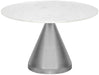 Make an impression when you gather around this Emery dining table. This elegant table blurs the lines between modern and contemporary with elements of timelessness, making it a great fit in your dining room. The metal base is made from stainless steel for lasting good looks and has a brushed silver finish for long-wearing beauty. The top features white marble construction for an up-to-the-minute look that's understated yet elegant.
