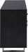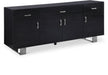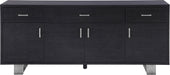 Organize flatware and silverware in the three spacious drawers of this Excel sideboard buffet. This beefy sideboard offers room aplenty for holding things you need in the dining roomout of sight and out of mind. The rich grey oak veneer lacquer finish with chrome base and handles gives this unit the modern panache needed to mesh with nearly any contemporary dining set. Wood and stainless steel construction ensures lasting beauty and long-lived performance.