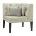 The Maddox Dining Sofa Corner with Three Pillows takes dining seating to the next level. This piece is fully upholstered in taupe fabric. Two taupe pillows and one grey decorative pillow with geometric designs accent this piece. Button tufting along the back adds extra flair to this already stunning piece. No need to worry about comfortability, as this sofa has foam cushion for the back and seat. Not to mention, the dark wire brush finish of the legs gives great contrast with the taupe fabric. Add this sofa corner to the dining table in this collection for variety.