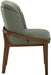Warm and inviting, the Navo green vegan leather upholstered dining chair blends Art Deco elegance with everyday comfort. Its smooth vegan leather seat is paired with a solid wood frame in a rich brown walnut finish for timeless appeal. With its sculpted back and tailored lines, it adds sophistication to any dining setting.