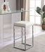Saunter up to the home bar or kitchen counter and have a seat on this Nicola Faux Leather Counter Stool. An elegant armless design adds contemporary panache to your space, and construction with-finished steel gives ample support to the stool while ensuring a modish look. A thick cushion on top is upholstered in soft and durable faux leather that feels just like the real thing but lasts and lasts with minimal upkeep. The addition of a footrail on the base makes for added sitting comfort.