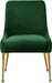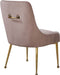 Revamp your dining space with this Owen Dining Chair. Posh velvet upholstery covers every inch of this chair, giving it a svelte look that's just the thing for modern decor. The polished legs have a ball design for added visual oomph, and a matching handle on the back adds an elegant detail while also providing an easy way to slide the chairs in and out from your choice of table.