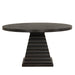 The Plateau 54" Round Dining Table offers timeless style and everyday durability. Crafted from solid Rubberwood and Oak veneers, it features a rich espresso finish with heirloom-style distressing. The bold pedestal base and geometric lines blend rustic charm with modern appeal. Perfect for both casual meals and special occasions, the spacious round top comfortably seats four—creating a warm, inviting setting for gathering and dining.