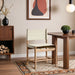Sleek and contemporary, Rawlins dining chair in warm vegan leather makes a bold statement in any dining space. With a natural ash wood frame and durable upholstery, it's as sturdy as it is glamorous. Elevate every meal with the effortlessly chic appeal of this modern dining chair.