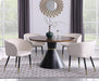Gather your favorite peeps for an intimate meal served around this pretty Sheridan dining table. This table features a wood top with elegant wood-grained details that's sized just right for small dinners with just a few folks. The top rests on an elegant hourglass-style metal base in matte black for lasting beauty and a strong burst of contemporary charm.