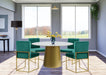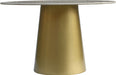 Give your contemporary decor that extra bit of oomph with this chic Sorrento Dining Table from Meridian Furniture. Its brushed gold metal base provides sturdy support while also adding elegance and shine, which is sure to draw the eyes of all who enter your home. Its genuine marble top provides a sleek stylish surface that complements its gold base, and its round shape makes it a versatile choice that's perfect for any living space.