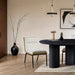 Bold meets everyday comfort with the Viceroy polyester fabric upholstered dining chair to elevate your contemporary dining ambiance. Upholstered in This unique chair brings warmth and sophistication to any space. Its sleek matte black iron frame provides striking contrast, while the natural wood accents add an organic touch.