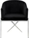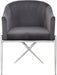 Spread elegance and modernity to your dining room with this Xavier velvet dining chair from Meridian Furniture. This beautiful chair features a simple barrel seat with a plush cushion and back, ensuring that every meal is a comfortable one. The steel legs provide durable support while you sit, and an "X" leg in the back lends the chair an uber-modern vibe. finishing on the base is sleek and chic, giving this chair a contemporary edge that's well at home in any modern dining room. Sleek velvet upholstery is durable and tough yet soft against your body, elevating meal times to a luxurious experience.