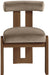 Elegant and sculptural, the Arienzo velvet upholstered dining chair adds Art Deco sophistication to any dining space. Its ultra-luxe velvet upholstery pairs beautifully with walnut-finished solid wood legs for warmth and stability. With its distinctive rounded backrest, this chair blends comfort with timeless style.