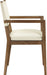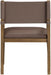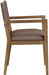 Vegan leather meets sleek brown walnut ash wood in the Avon dining arm chair, creating a look that's as practical as it is polished. Built to resist stains and stand up to everyday use, this piece doesn't sacrifice comfort for style. Whether it's a quiet breakfast or a lively dinner party, this chair rises to the occasion with understated elegance.