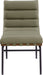 Every guest feels like a VIP when they're seated in this Burke olive dining chair. A tufted back adds textural appeal and soft, posh comfort to every meal while walnut wood veneer metal dowels lend this chair a rustic touch. The metal frame is sturdy and supportive, while an armless design facilitates easy movement and good dinner conversations. Soft fabric gives you the luxe look without the maintenance commitment.