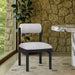 Soft textures and timeless design meet in the Roundhill dining chair, upholstered in a rich linen-textured fabric. A black wood frame enhances its art deco silhouette, bringing warmth and sophistication to your dining space. Whether styled solo or paired with a set, this chair elevates the ambiance with understated elegance.