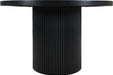 Give your dining room or eat-in kitchen a casual vibe with this Belinda dining table. A solid wood base and resilient construction offers impeccable durability and remarkable beauty. The round top rests on the fluted base, providing oodles of elbow room for family and friends to get comfortable while they nosh on their meal. The chair's made from wood and wood products for resilience, and its neutral finish lets it mesh well with the dining chairs or stools of your choice.