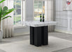 Counter Height Off- White Faux Marble Top, Ebony Black 100% Hardwood Table Base, Swirl Accent Pattern, Capability to Fit up to 8 Chairs, Coordinates with D130C-GRY Gray Velvet Counter Chairs, D130C-RYB Blue Velvet Counter Chairs