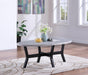 Gray Faux Marble Tabletop, Ebony Black Table Legs, 100% Solid Wood Legs, Cross Bar Table Leg Design, Contouring Tabletop Accents
