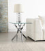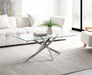 Chrome Table Base, 8mm Thick Clear Tempered Glass, Beveled Edges, Table Levelers, Attached Glass for Entire Collection