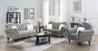 Tufted Seat, Back, and Arms, Gray Luxurious Velvet, & Rolled Arms, One Solid Cushion Seating, Wavy Back Design, & Chrome Nail Head Trim Accents, Solid Wood Leg, & Faux Fur Accent Pillows, Removable Backs and Arms for Easy Delivery, Tufted Seat and Back, & Gray Luxurious Velvet, One Solid Chaise Cushion, hrome Nail Head Trim Accents, Ebony Black Bun Feet, Faux Fur Accent Pillows, Solid Wood Leg