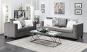 Gray Luxurious Velvet, Slver Nail Head Trim, Sewn on Seat Cushions and Back, High Density Foam Cushion, Squared Arms, Pillow Backs, & Faux Fur Accent Pillows