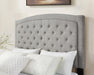 Light Woven Fabric Upholstery, Button Tufting, Low Profile Footboard, Plastic Bedframe Legs