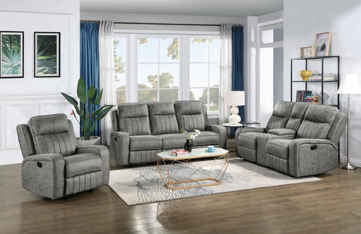 Treated Microfiber Fabric, Manual Reclining, Cup Holder Console Storage, Vertical Pattern Accents, Drop Down Table Pillowtop Headrest, Reenforced S...