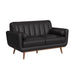 The Horizon Living Room Set exudes the coveted charm of mid-century modern style. Built with a frame that is fully upholstered in quality faux leather, this collection is built for durability. Comfortable foam cushioning, decorative tufting on the backrests, included bolster pillows, and track arms forming sleek lines culminate to mark thoughtful design, while exposed front rails and wood legs highlight excellent craftsmanship. For a refined and sleek addition to your living space, the Horizon Living Room Set delivers in quality and style.
