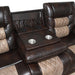 Air Gel Fabric, Caramel Tone Accents, Diamond Stitching, Pillowtop Arms & Headrest, Stainless Steel Cup Holder Inserts, Storage Compartment, Brushed Bronze Hand Applied Nail Head Trim, Reenforced Steel Reclining Mechanism, Manual Reclining