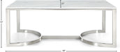 Lend your living room or den a modern slant with the Copley coffee table from Meridian Furniture. This coffee table features geometric bases, and a sleek chrome finish that gives your space a bold, up-to-the-minute look. Each table has a solid stone top for durability and style.