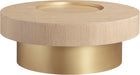 Go bold or go home when you add this handsomely crafted Makai oak and brushed brass coffee table to your modern room. A contemporary design with sunken geometric details on its top makes this round two-tiered table a must have for the modern home. Its rich color with brushed brass finished base instantly commands attention in your living room, family room, or den. Oak veneer construction ensures sturdy durability and long-lasting beauty of this handsome coffee table.