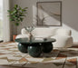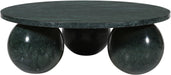 Heads can't help but turn when you add this lovely Spherical coffee table to your space. Three round ball-shaped bases crafted from genuine marble provide a striking foundation that exudes elegance and affluence, complemented by an art deco design that exudes timeless sophistication. This unique coffee table blends luxurious materials with exquisite craftsmanship, promising to be a focal point of any room, where style meets substance in perfect harmony.