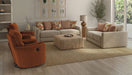 Avondale features the ultimate comfort of our Cuddler Cushion. Accented with an eclectic mix of toss pillows in a variety of colors and textures, a unique-shaped Swivel Glider Recliner offers added seating options. Available in your choice of two color packages: Burlap or Nature.